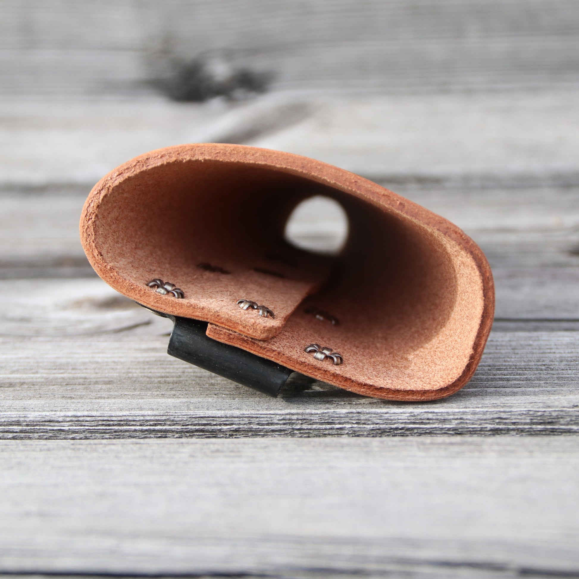 剪定ばさみを収納する本革ケース。クリップタイプなのでベルト等に固定できます。