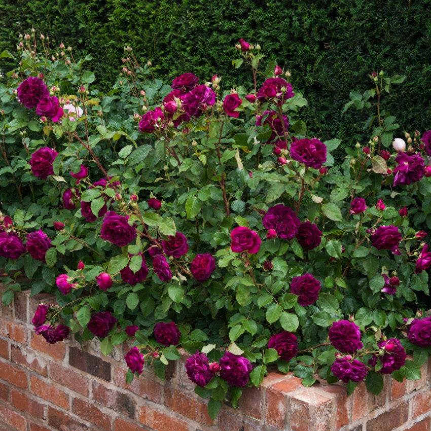 明るいクリムゾン色のつぼみで、開花と共に中心が現れるにしたがって、ベルベット調の深みのある色になりますが、外側の花びらは比較的淡い色のまま残ります。初めは大輪のディープカップ咲きですが、時が経つに連れてシャローカップ咲きになります。幅広によく茂り、病気に強いしっかりとしたシュラブです。葉はミッドグリーンで赤みを帯びたブロンズの若葉とのコントラストが美しく、フルーツを感じさせる濃厚なオールドローズの香りです。香りの専門家であるロバート・カルキンは、ブラックベリー、ブルーベリー、プラムのようなあたたかみのあるフルーツの香りと表現しました。2011年財団法人日本ばら会主催の香りの部門で金賞を受賞、同じ年のアメリカ・ポートランドで行われた、シュラブ部門のベストローズも受賞しています。 ムンステッド・ウッドはイギリスのサリー州にあるガートルード・ジェキル自身のガーデンで、彼女はそこで一生のほとんどを過ごし、執筆に励みました。 1 x 0.75m |