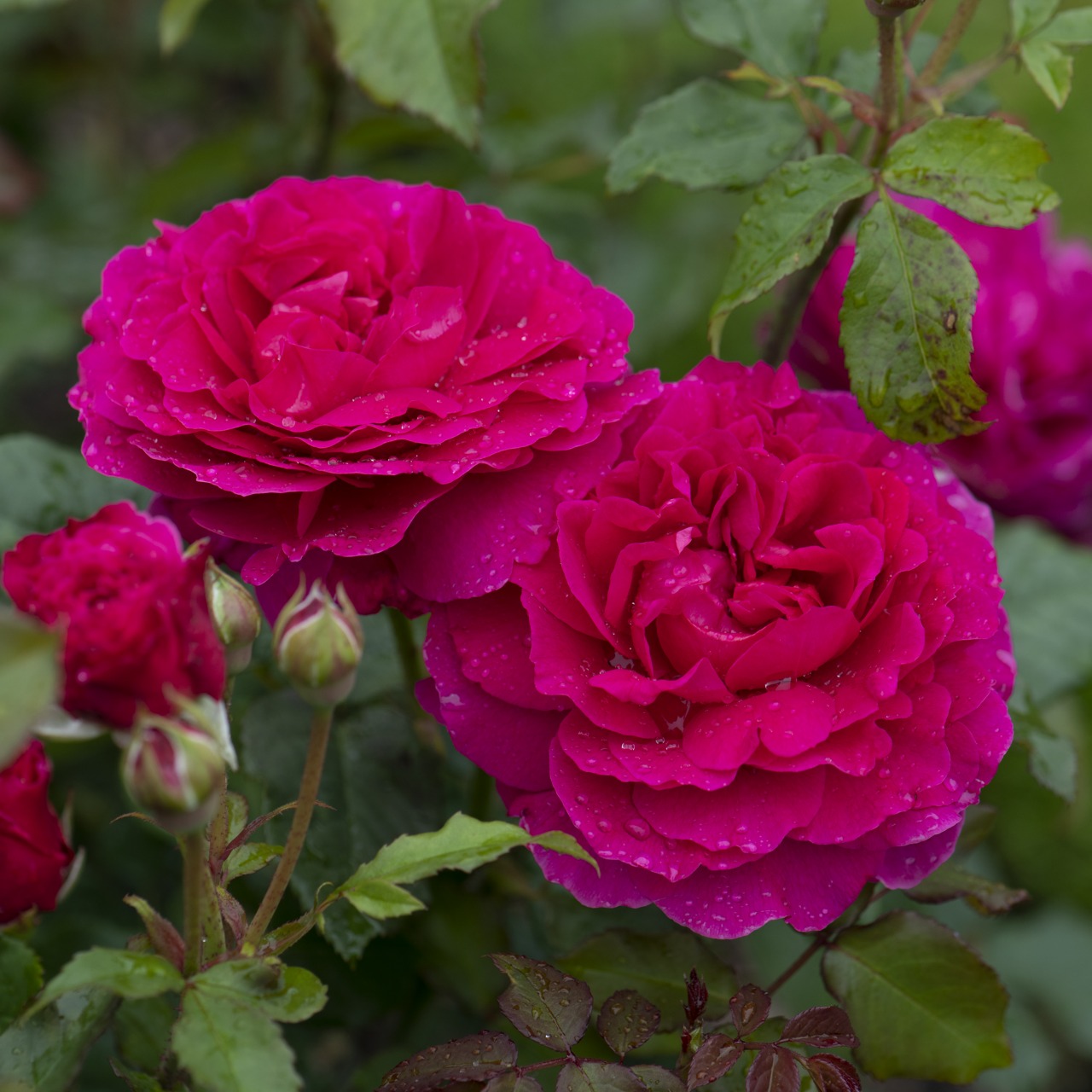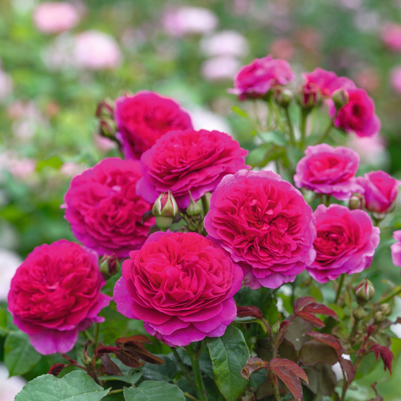 華麗な品種で、花びらが密集したロゼット咲きの大輪。オールド・ローズのスタイルを踏襲。ハッとするような深いピンクの色合いを持ち、咲き進むにつれて外側の花びらの色が少し淡くなってチャーミングな印象を与える。素晴らしく、濃厚でフルーティーな香りが、花の美しさをさらに引き立てる。勢い旺盛なバラで、マルベリーのようなパープルの枝と深緑の葉を持つ、とても美しい形の広がりと丸みのあるシュラブを形成して芳醇と裕福といった印象を与える。 トーマス・ハーディの著名な小説『遥か群衆を離れて』(1874年)の愛すべき登場人物にちなんで名付けられました。自然界に身を置く凛々しく正直で働き者の男性主人公は、物語の展開の中で直面する多くの試練や苦難にも関わらず、小説のヒロイン、バスシーバ・エヴァーデンを一途に愛し続けます。 |
