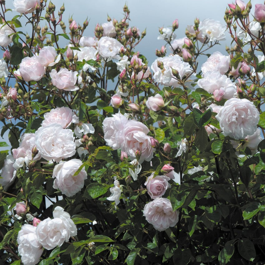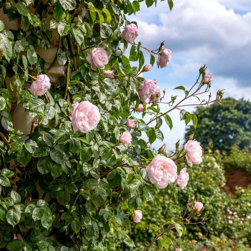 上品な花と美しい花姿の、しっとりとした魅力のあるバラです。花の中心は輝きを持ったソフトピンクで、外側にいくほどうすいピンクへ変化します。咲き初めは雄しべがちらっと見えて、スイレンのような趣があります。オールドローズ、ムスク、ミルラを思わせる、うっとりするほど濃厚な香りがします。勢いのある品種で、弓なりになる枝は大きめのバランスの取れたシュラブへとあっという間に成長するので、つるバラとして香りを楽しみながら育てるのも良いかも知れません。病気にかなり強いのも特長です。 イギリスNGS(ザ・ナショナル・ガーデン・スキーム)の75周年を記念して生まれたバラです。NGSは、オープンガーデンという方法で、多くの美しいプライベートガーデンへの訪問を可能にてくれました。 3-3.5mのつるバラとしてもご利用いただけます。 |