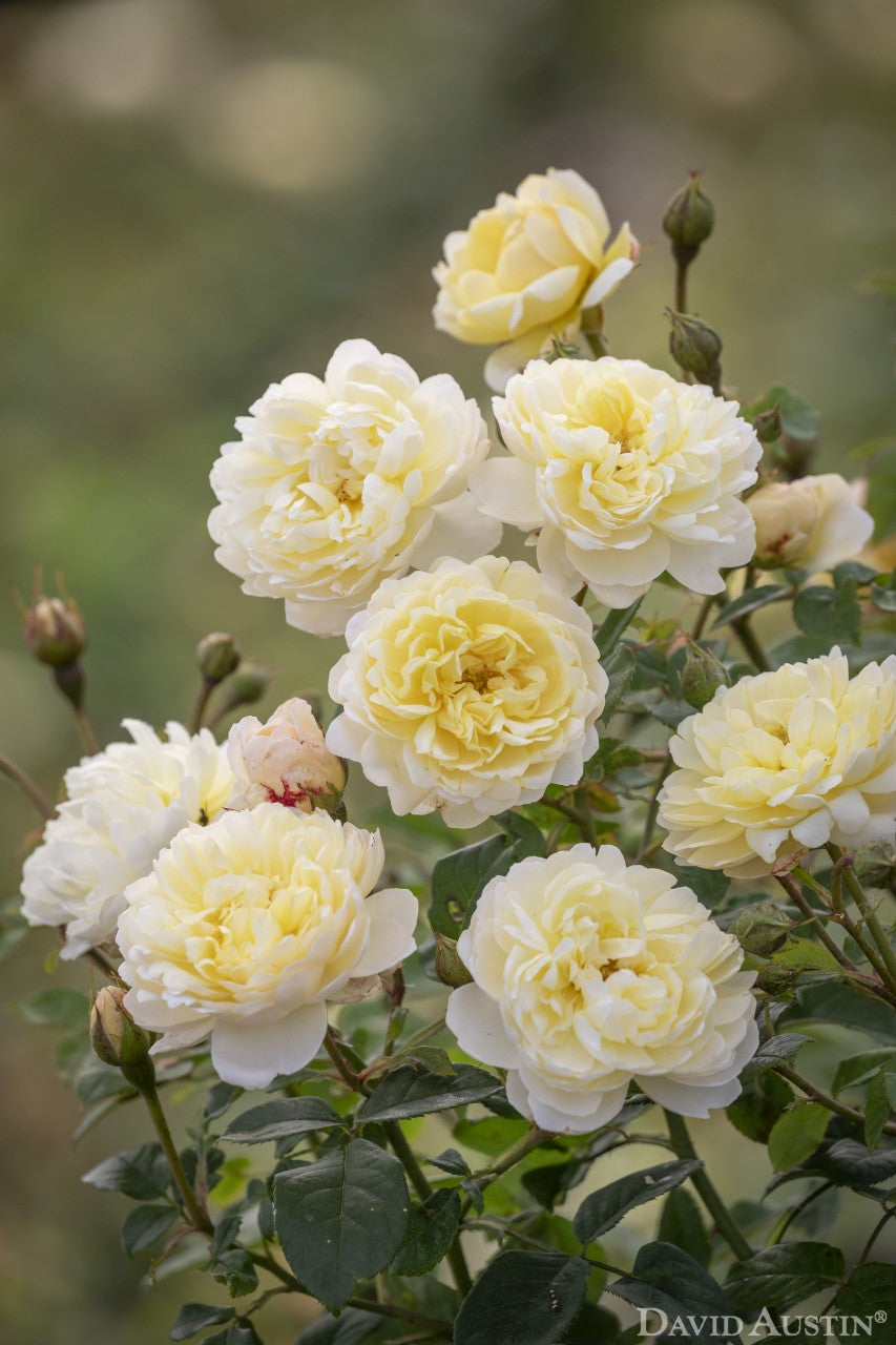 ナイ・べヴァン(Auspital) は、実に美しいシュラブローズで、中輪で小さめの花を咲かせます。時間が経つにつれてやわらかいソフトイエローから、穏やかなクリーム色に変化する、珍しいオープンカップ咲きです。 貝がらのような丸みを帯びた花びらは、まるでハート形のような可憐さを持ち、やわらかさとゆるさの中にも、中心からびっしりと並んでいる姿が、ふわふわの羽のような雰囲気を醸し出します。 最初に迎えるピーク時の花びらは特に魅力的で、中心にかけて色が濃くなり、目を見張るものがあります。とても健康的で、光沢のある真緑の葉を持った程よい大きさのシュラブに育ち、ほのかなミルラの香りを漂わせます。 NHS(イギリスの国民保健サービス)の創設者、アナイリン・ベヴァン氏にちなんで名付けられたこの品種は、希望と明るい気持ちにさせてくれる軽やかな花を咲かせてくれます。ベヴァン家とアナイリン・ベヴァン氏のサポートによって、この品種を紹介できることを大変光栄に思います。 1x0.75m |