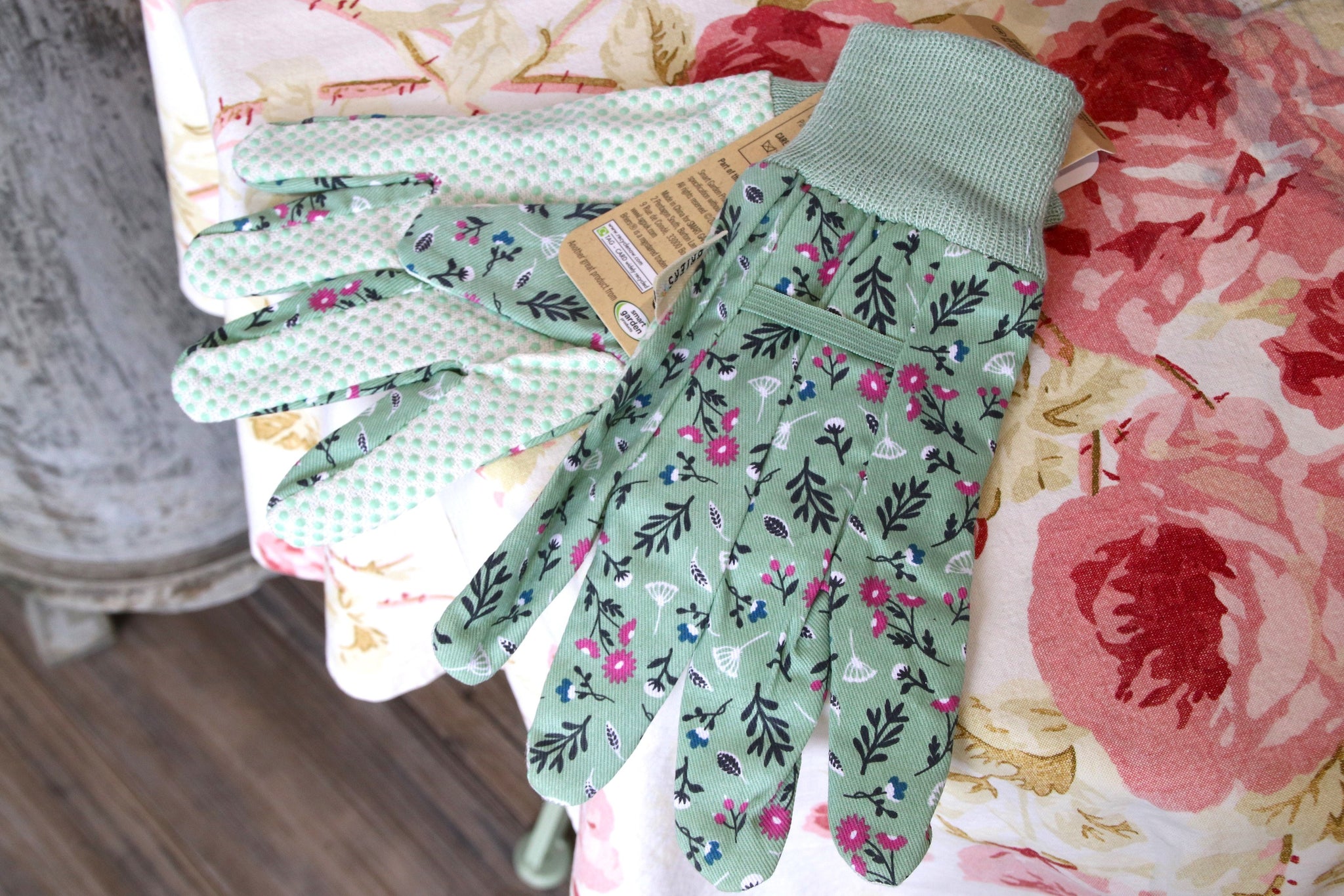 花柄ガーデニンググローブ(お花畑) コットングリップ 3組セット - Triple Pack Cotton Grip Gloves Flowerfield
